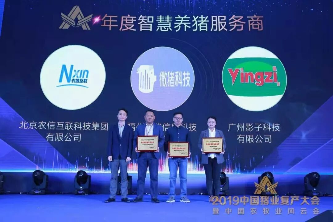 农信互联受邀参加此次会议,并荣获“2019中国农牧业风云榜年度智慧养猪服务商”称号,与农信互联一同获得该称号的还包括福州微猪信息科技有限公司、广州影子科技有限公司。